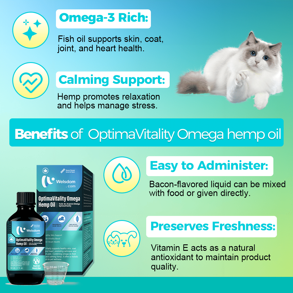 • Dual-Action Formula: Merges Omega-3 fatty acids from fish oil with hemp oil to support both physical mobility and a balanced temperament.